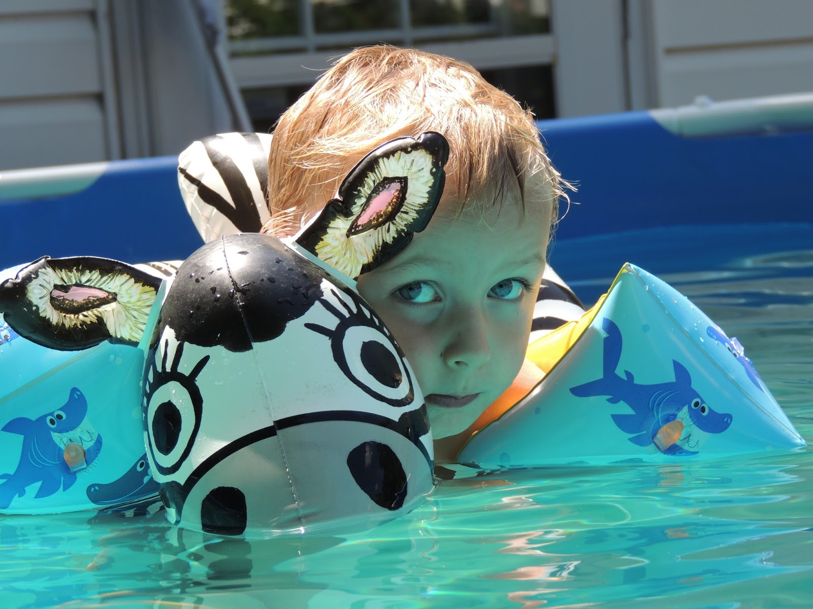 Yesterday we had a cookout with our family. It was our nephew Skyler's first time in our pool. Since we got the pool I've been looking forward to seeing him in it.... he was a little frightened at first & it was chilly, but he ended up having a good time. Captured some CUTE pics of him.